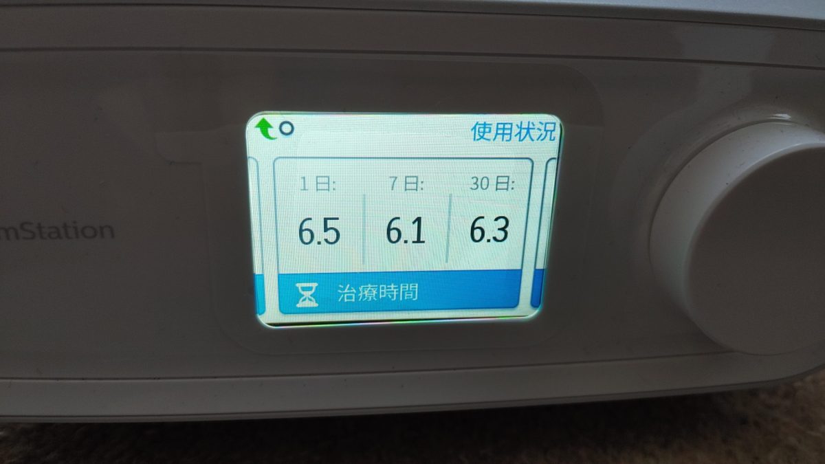 で、シーパップには使用状況を確認するメニューがあり、いま自分がどのくらい使用できているかを見ることができる。ドリームステーションでは丸いダイヤルを回し「使用状況」のところでダイヤルを押すと表示される。