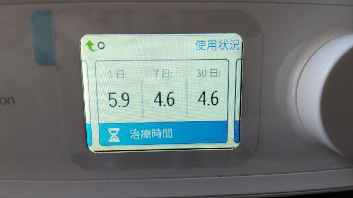 で、シーパップには使用状況を確認するメニューがあり、いま自分がどのくらい使用できているかを見ることができる。ドリームステーションでは丸いダイヤルを回し「使用状況」のところでダイヤルを押すと表示される。